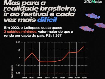 Entretanto, o custo da entrada total do ingresso – o chamado Lollapass – encareceu nos últimos anos. A pesquisa analisou o valor da entrada em comparação ao salário mínimo e o preço por atração, ou seja, calculando o preço do Lollapass pelo número de artistas no festival.